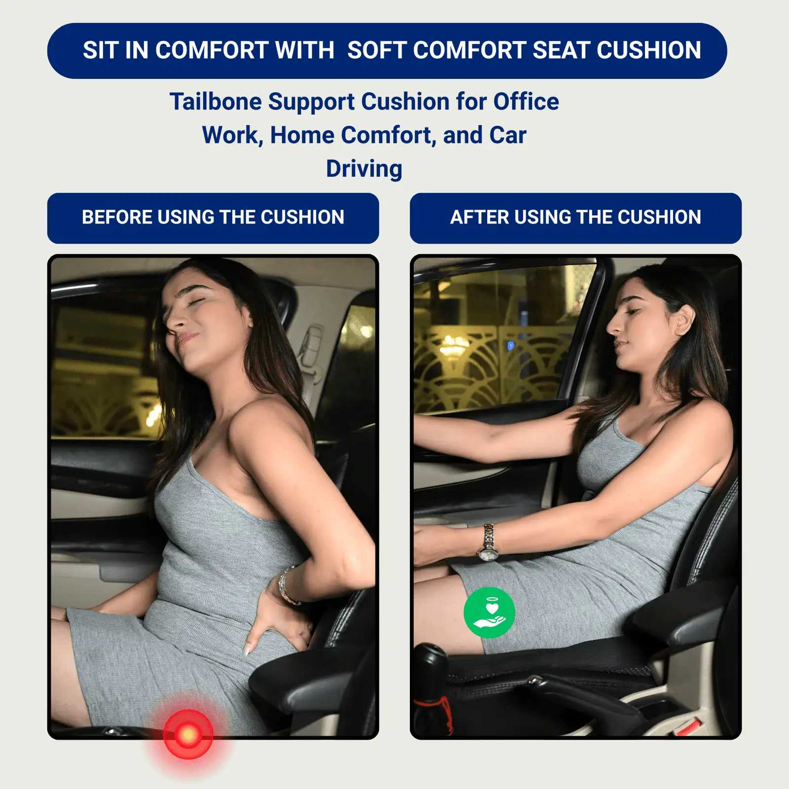 - The Softrest Slim-Profile Seat Cushion: Experience the comfort of memory foam without the bulk. This sleek seat cushion adds a layer of luxurious softness to your car seat while maintaining your driving position. It absorbs road vibrations and reduces pressure on your hips and thighs, making even short trips feel smoother and more enjoyable.